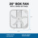 20" Box Fan with 3 Speeds and Easy-Carry Handle